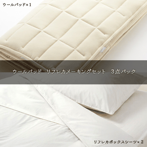 | 商品特長 | ウールパッド1枚、リフレカボックスシーツ2枚入りのセットです。